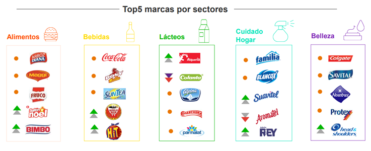 Al respecto, Mario Arregui, Country Manager de la división de consumo masivo de Kantar, informó que el top cinco está compuesto por Alquería, Colanta, Coca Cola, Arroz Diana y Colgate.