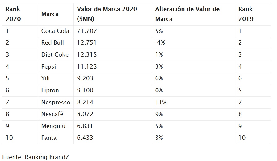 BrandZ Top 10 de Las Marcas de Bebidas Más Valiosas 2020