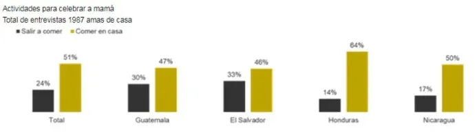 Se estima que en Centroamérica un 98 % de las amas de casa son mamás mayores de 35 años y 9 de cada 10 acostumbran a celebrar este día con diferentes actividades, ya sea dentro o fuera de sus hogares, o con regalos para mamá.