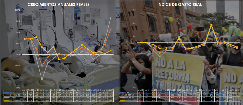 Así, en términos reales fue de 11,4%, que es una cifra que ya está afectada por los datos negativos del 2020; sin embargo, destacó Raddar, este crecimiento no es suficiente para nivelarse con el gasto de enero de 2020, frente al que aún se está en un 93,4% de esa fecha.