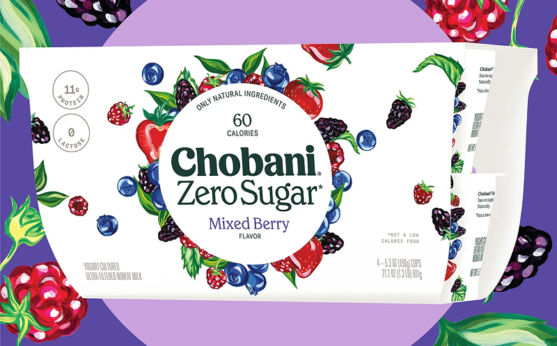 Para lograr el contenido de cero azúcar, Chobani dice que elabora el nuevo producto con leche que ha sido filtrada para reducir el azúcar natural. Luego, la marca utiliza métodos de fermentación natural que permiten que los cultivos de yogur consuman el azúcar restante; y luego agrega edulcorantes naturales no transgénicos como la fruta del monje y la alulosa.