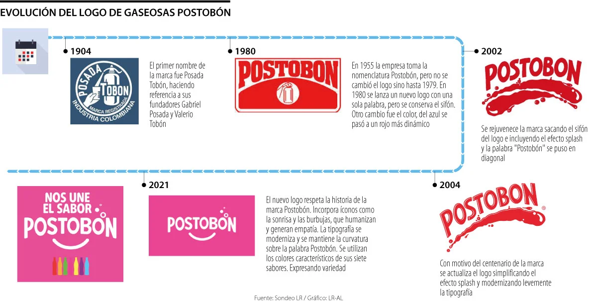 La tradición no puede cerrarse a la modernidad y eso fue precisamente lo que hizo el fabricante Postobón, al cambiar su logo de Gaseosas Postobón. Se trata del cuarto cambio de imagen que realizan en 117 años de trayectoria comercial (la empresa se fundó en 1904).
