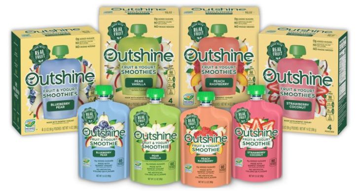 Elaborados con frutas mezcladas con yogur sin grasa, los batidos de frutas y yogur Outshine están disponibles en cuatro sabores: arándano, pera, melocotón, frambuesa, fresa, coco y pera y vainilla. Cada uno contiene <10 g de azúcar total, 0 g de azúcar agregada, sin saborizantes ni colorantes artificiales y “sin ingredientes transgénicos”.