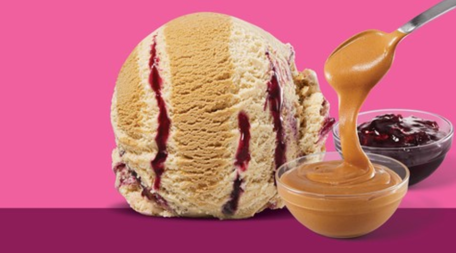 Baskin-Robbins ha lanzado un sabor de helado por tiempo limitado, sándwiches PB ‘n J, es un suave helado de mantequilla de maní con dulces y betas de gelatina de uva, en un helado marrón con sabor a mantequilla, el nuevo promete traer innovación en el consumidor con esta combinación de sabores. Se puede disfrutar en cono o tarrinas de helado.