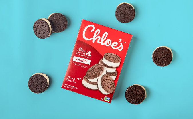 Chloe’s, una marca de novedades congeladas sin lácteos con sede en EE. UU., ha anunciado el lanzamiento de una nueva línea de productos de minisándwiches de galletas, sabor vainilla y chocolate.