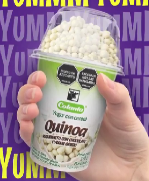 Colanta a través de sus redes sociales oficiales promociona nuevo yogur con cereal de quinoa, este producto tiene una base de yogur sabor vainilla acompañado de un cereal quinoa recubierto con chocolate y yogur griego.