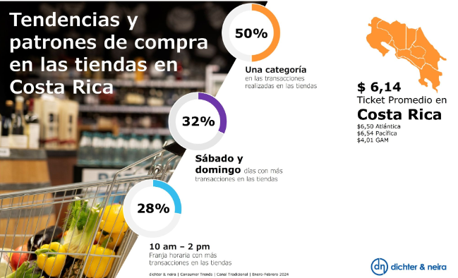 El gasto promedio realizado en las tiendas de barrio en Costa Rica en los primeros 2 meses de 2024 fue de US$6,14 millones. En la región Atlántica, un robusto US$6,50 millones contrasta con el más conservador US$4,01 millones de GAM, demostrando diferencias importantes en distintas regiones.