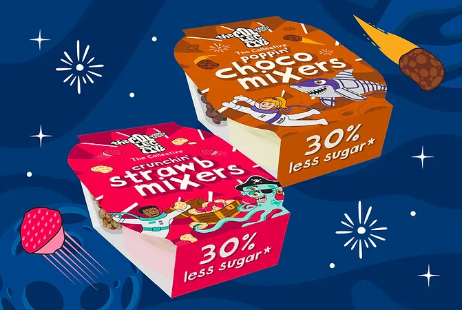 Los nuevos Mixers de The Collective ofrecen una alternativa más saludable a los envases partidos existentes en el mercado: disponibles en dos sabores, cada yogur contiene un 30% menos de azúcar que el promedio del mercado de yogures saborizados con inclusiones.